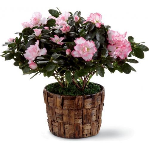 Azalée Rose™ de FTD® couvre votre destinataire de magnifiques fleurs rosées afin de créer un cadeau fantastique bon pour célébrer toute occasion. Une Azalée éblouissante de douces teintes rosées par ces petites fleurs aux branches et présenté dans un couvre pot de feuille de bananier afin de créer une façon sensationnelle de transmettre vos souhaits les plus doux.