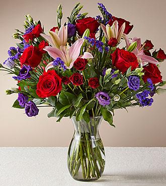 Cet bouquet élégant et remarquable combine couleurs vives et texture attrayante. Composé d'un judicieux mélange de roses et de lys, cet arrangement éblouissant ne manquera pas d'impressionner son destinataire.