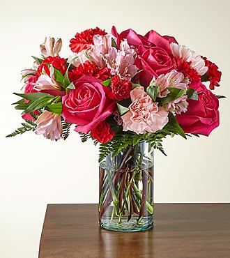 Des fleurs roses éclatantes rehaussées de verdure luxuriante qui feront le bonheur de tous. Ce bouquet est constitué d'un assortiment classique de jolies fleurs, comme des roses, des alstroémères et des œillets, entre autres.