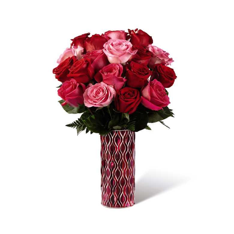 Rien ne dit "amour" comme le tourbillon des pétales d'une rose dans le rouge le plus sensationnel, destiné à parler au cœur de l'autre. Roses rouges, roses chauds et roses sont réunis par nos fleuristes exceptionnels pour créer une ruée de romance cette Saint-Valentin. Présenté dans un vase en verre rouge et rose en mosaïque avec un motif moderne pour donner à l'arrangement de fleur encore plus d'intérêt et un flair de drame et de style, ce bouquet de fleurs est une manière tout simplement étonnante d'exprimer votre amour le 14 février.